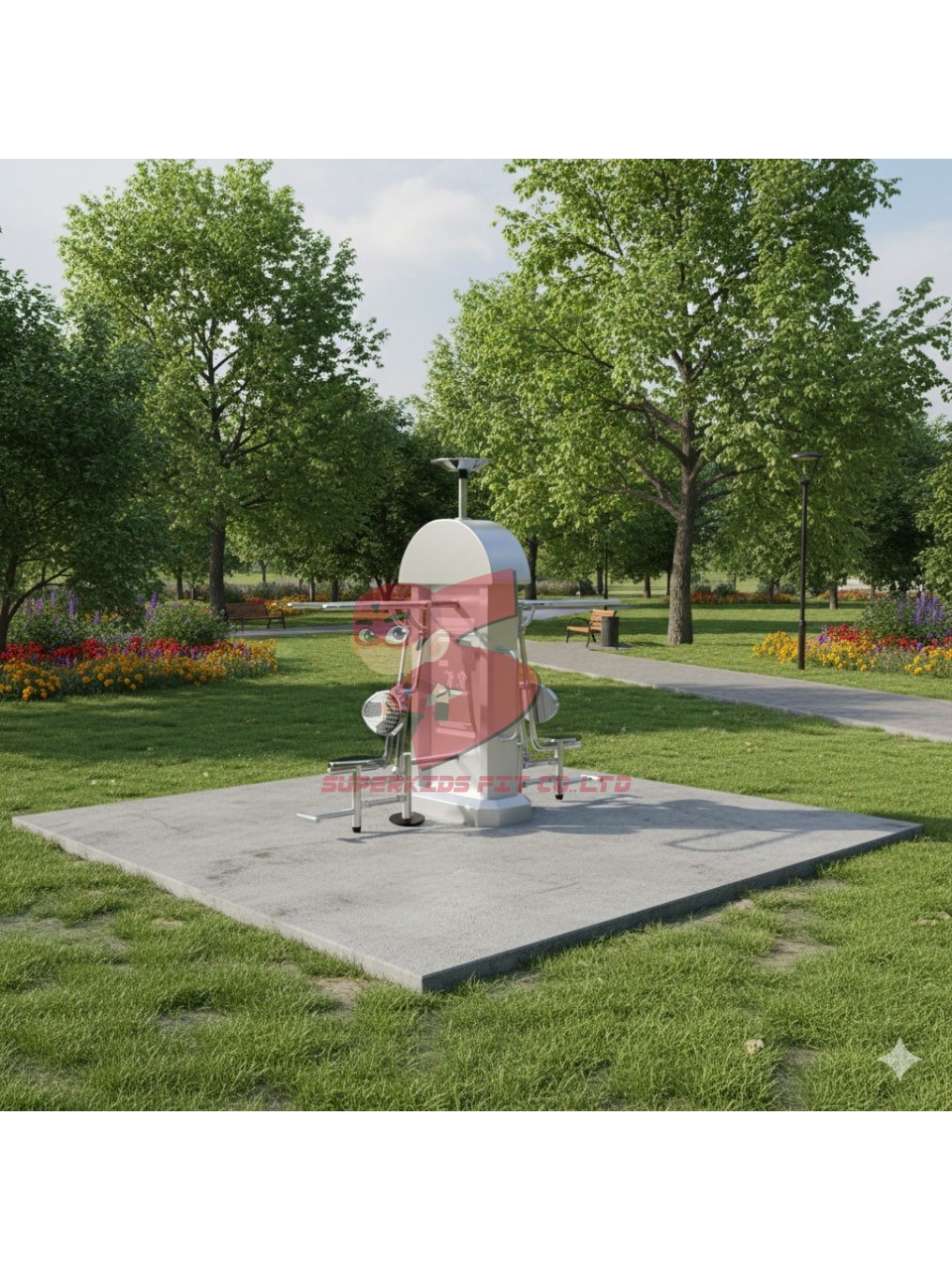 เครื่องออกกำลังกายกลางแจ้งสแตนเลส 2 สถานี พร้อมพื้นยางนวัตกรรมไทย 10 มม.