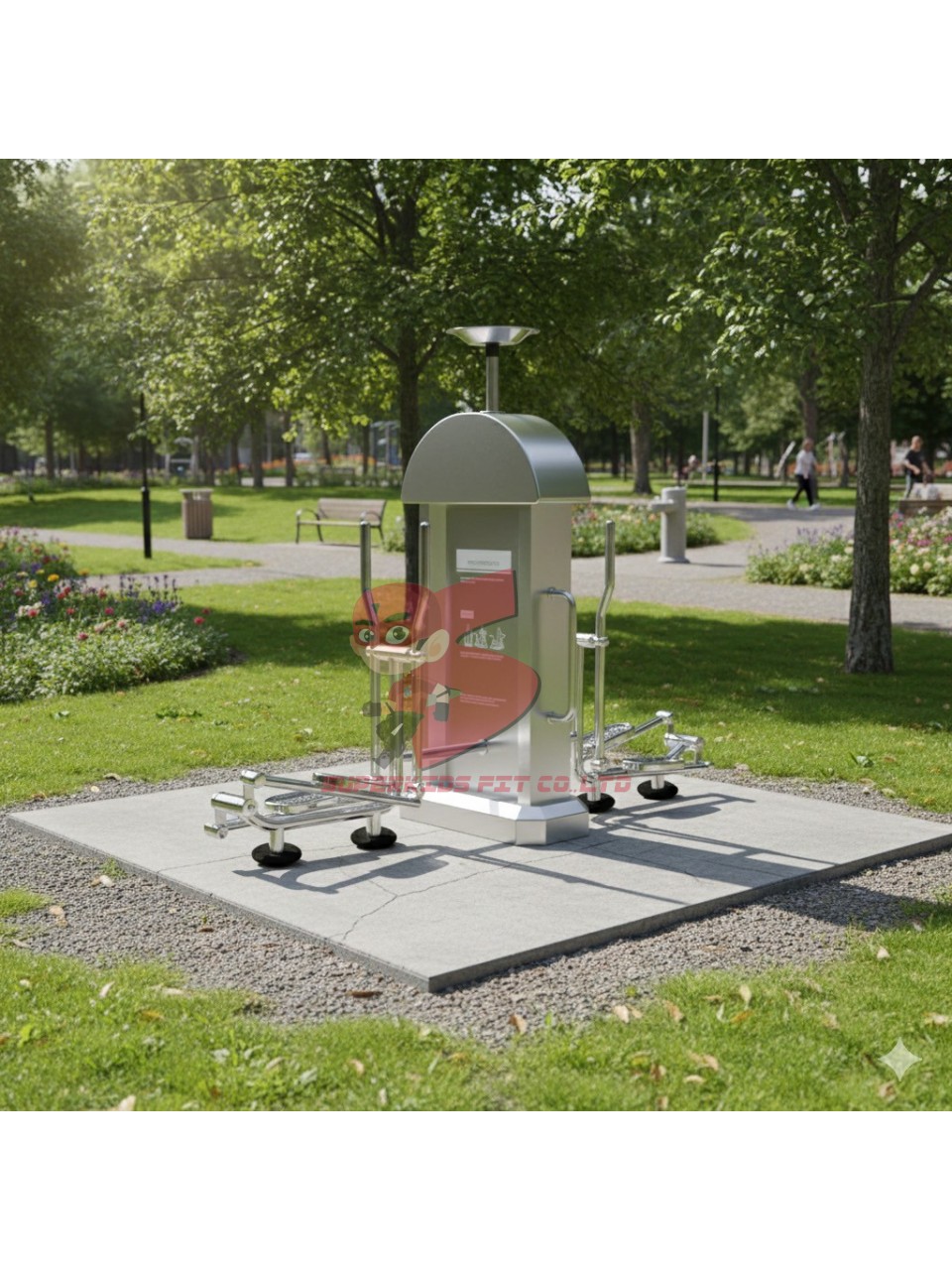 เครื่องออกกำลังกายกลางแจ้งสแตนเลส 2 สถานี พร้อมพื้นยางนวัตกรรมไทย 10 มม.