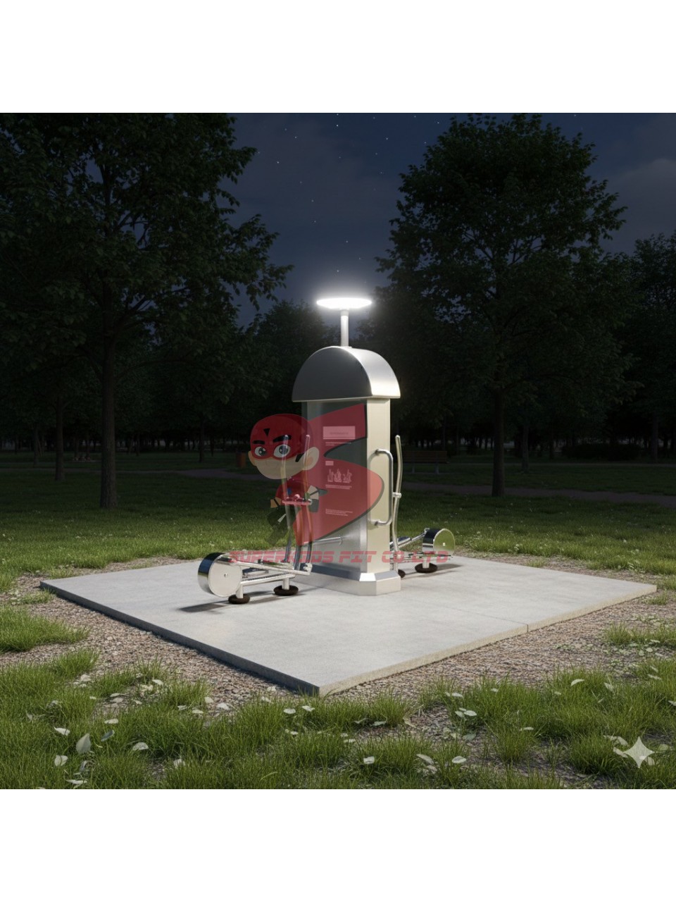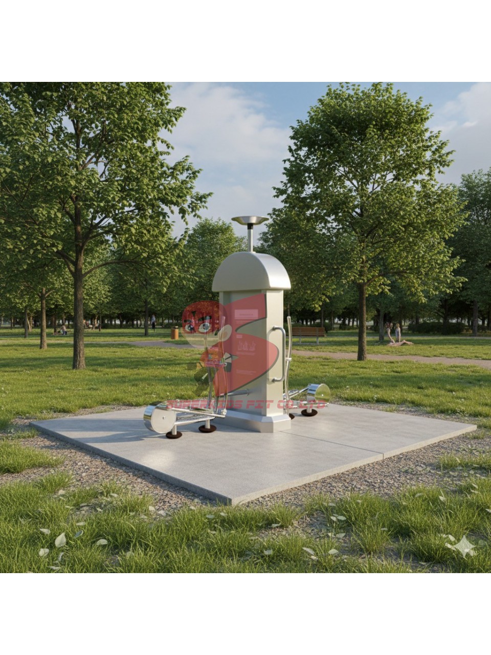 เครื่องออกกำลังกายกลางแจ้งสแตนเลส 2 สถานี พร้อมพื้นยางนวัตกรรมไทย 10 มม.