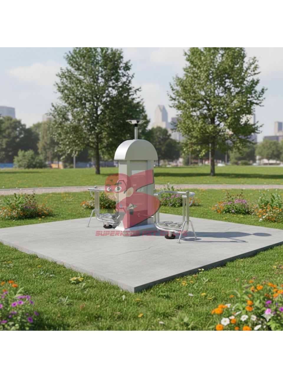 เครื่องออกกำลังกายกลางแจ้งสแตนเลส 2 สถานี พร้อมพื้นยางนวัตกรรมไทย 10 มม.