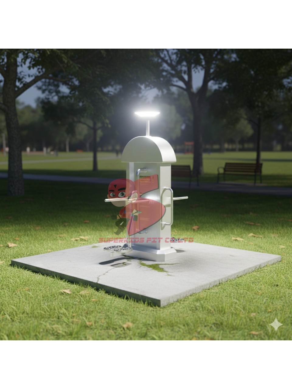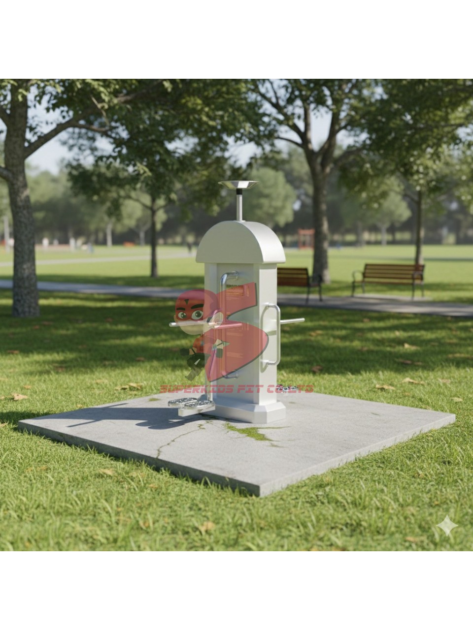 เครื่องออกกำลังกายกลางแจ้งสแตนเลส 2 สถานี พร้อมพื้นยางนวัตกรรมไทย 10 มม.