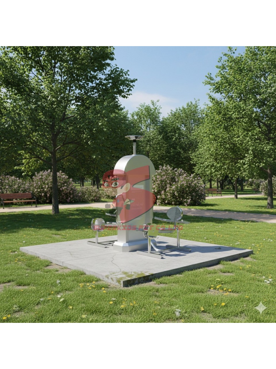 เครื่องออกกำลังกายกลางแจ้งสแตนเลส 2 สถานี พร้อมพื้นยางนวัตกรรมไทย 10 มม.