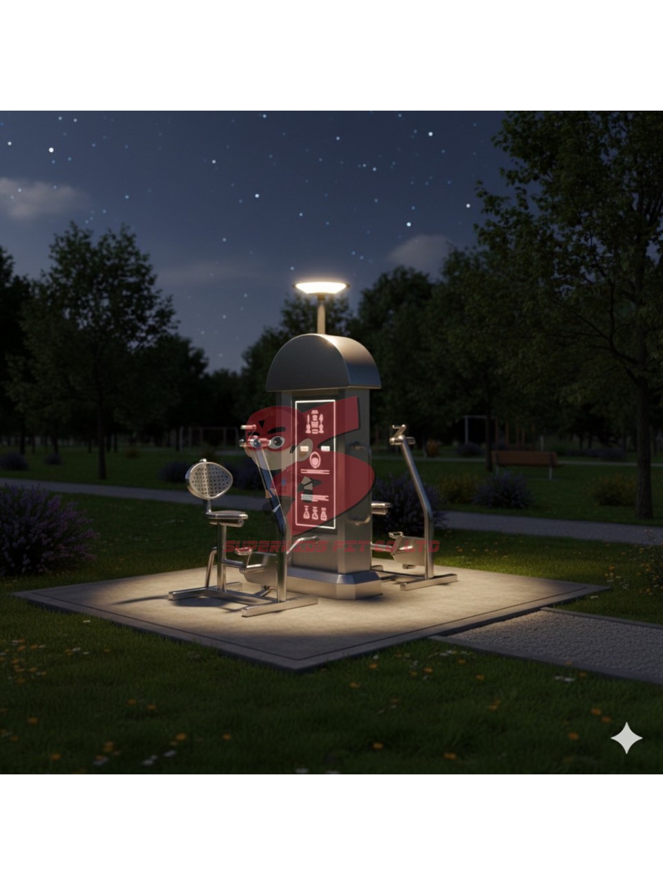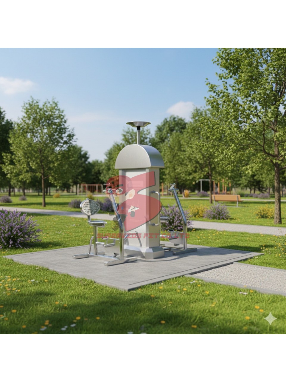 เครื่องออกกำลังกายกลางแจ้งสแตนเลส 2 สถานี พร้อมพื้นยางนวัตกรรมไทย 10 มม.