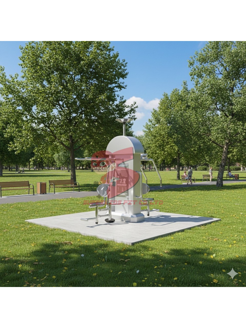 เครื่องออกกำลังกายกลางแจ้งสแตนเลส 2 สถานี พร้อมพื้นยางนวัตกรรมไทย 10 มม.
