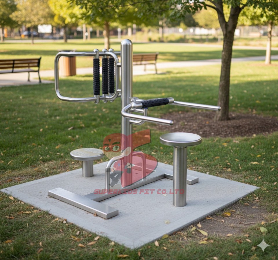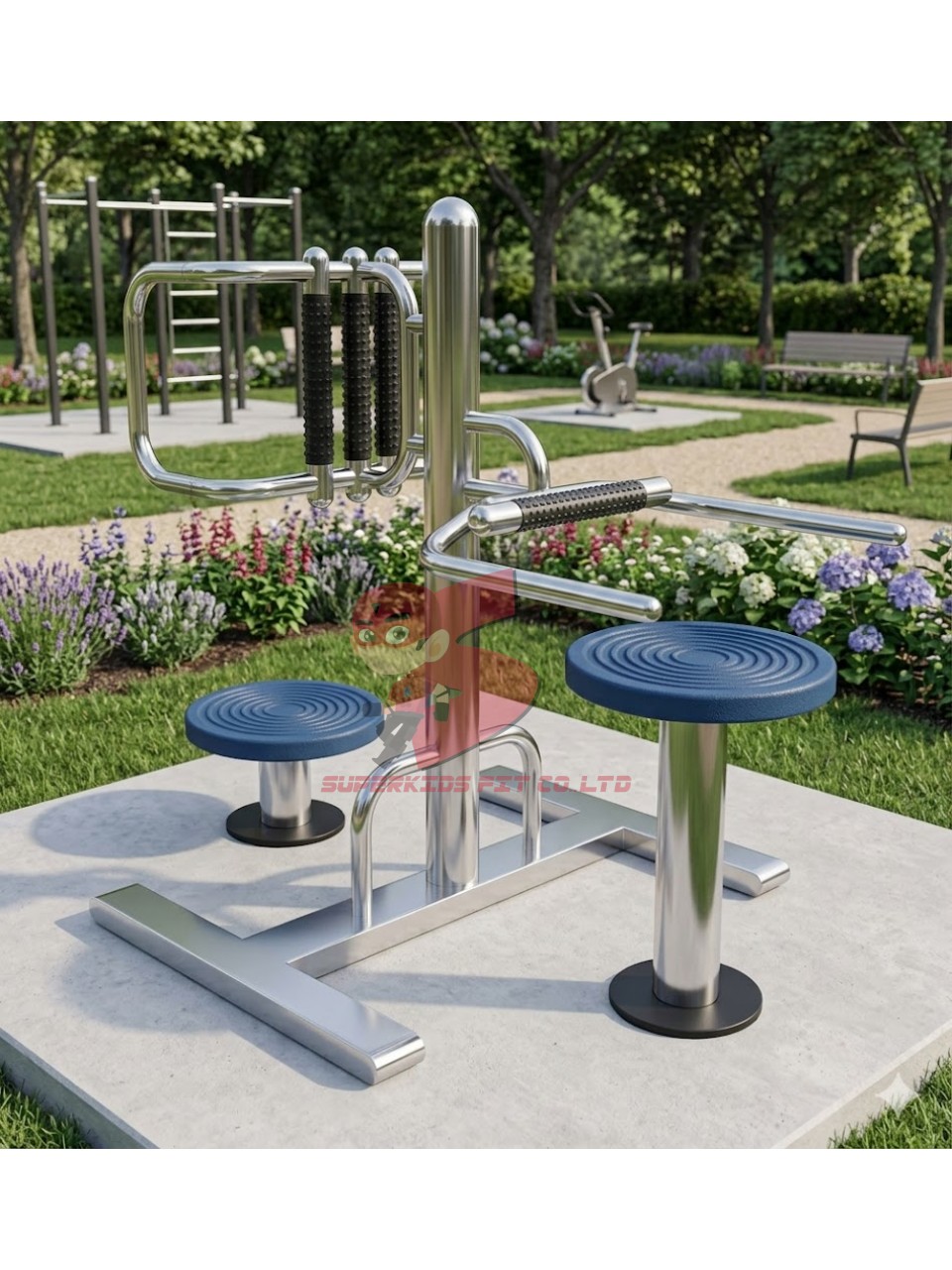 เครื่องออกกำลังกายสแตนเลสกลางแจ้งแบบ 2 สถานี