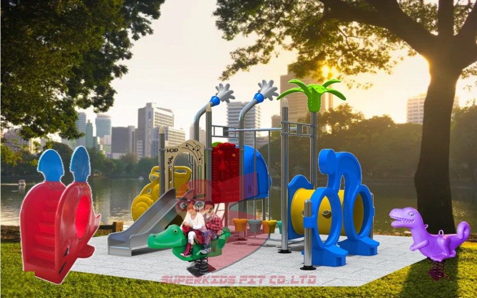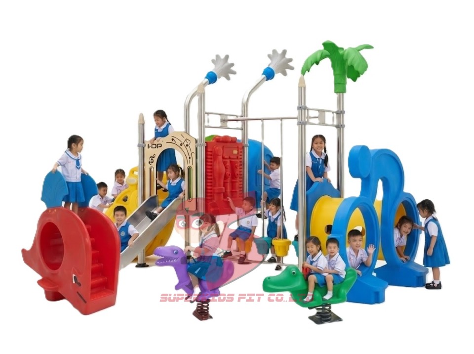เครื่องเล่นสนามกลางแจ้งแบบแสตนเลสเกรด 304 ขนาด 400x500x320 ซม.